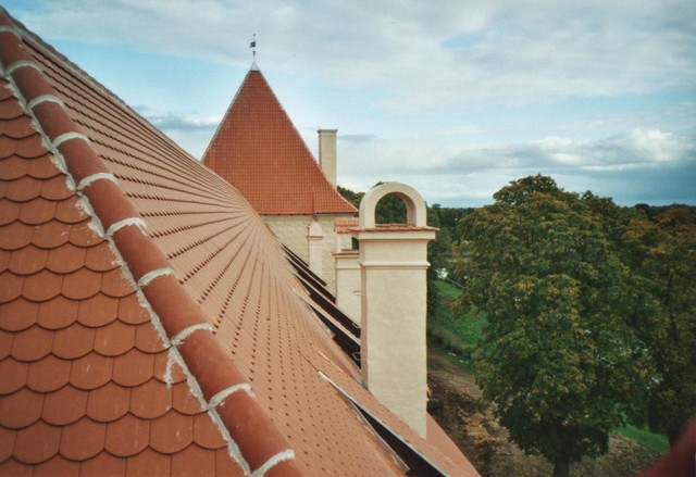 Stavba střechy hradu Bauska v Lotyšsku 2008